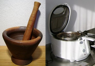 spezielle Geräte, wie Reiskocher, Mörser, Steamer oder Fritteuse mit.