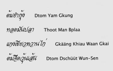 | Noch etwas zur Aussprache des Thai: Auf Speisekarten